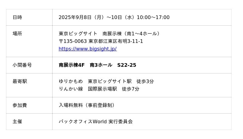 「バックオフィスWorld 2025 夏 東京」開催概要