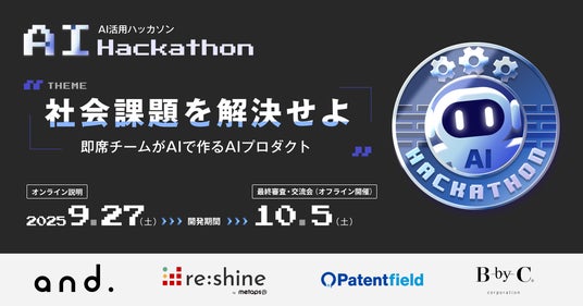株式会社メタップスホールディングス(渋谷区、代表取締役社長 山崎 祐一郎)が提供するフリーランスと企業のマッチングサービス「re:shine(リシャイン)」は、アンドドット株式会社(渋谷区、代表取締役社長 茨木 雄太)と共同で、生成AI技術を学ぶエンジニアに向けた実践型ハッカソン【社会課題を解決せよ - 即席チームがAIで作るAIプロダクト】を2025年9月27日(土)より開催します。