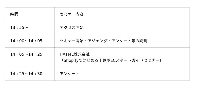 名称:Shopifyではじめる!越境ECスタートガイドセミナー