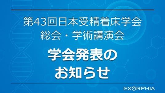 株式会社EXORPHIA(本社:東京都、代表取締役CEO:口石幸治)は、2025年8月28日(木)・29日(金)に開催される第43回日本受精着床学会総会・学術講演会(会場:名古屋マリオットアソシアホテル)において、当社研究員が最新の研究成果を発表いたします。