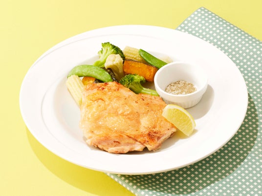 やわらかくジューシーなチキンは、ローズマリーの爽やかな香りやまろやかな塩味と相性抜群です。別添えのレモンを搾るとさらにさっぱりとした味わいをお楽しみいただけます。
