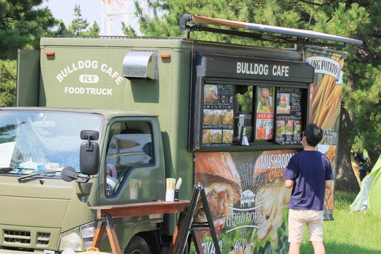 わくわくウォークのスタート・ゴール会場に、グルメ・物販ブースが勢揃い。