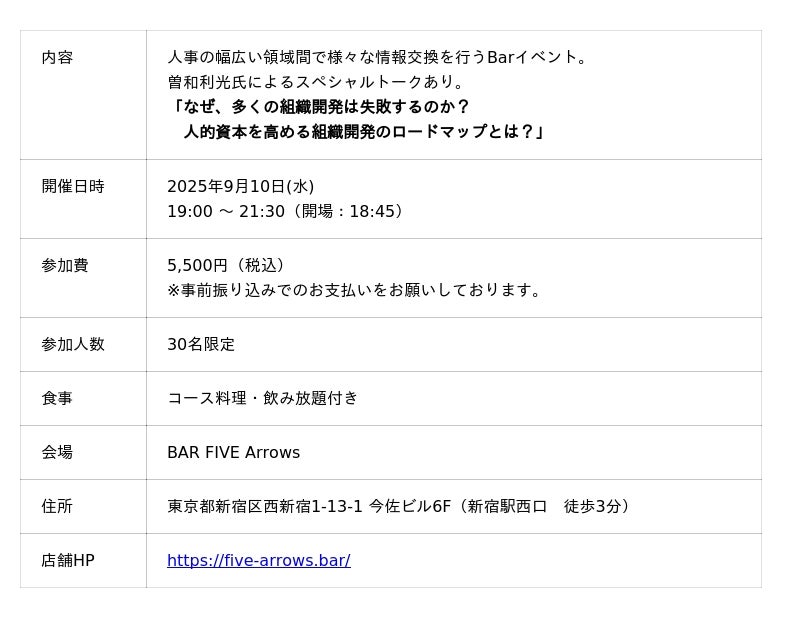 人事領域のプロフェッショナル「曽和利光氏」が語る組織開発の本質とは?「第10回 JINJI Lounge」イベントを新宿西口Barにて開催決定!