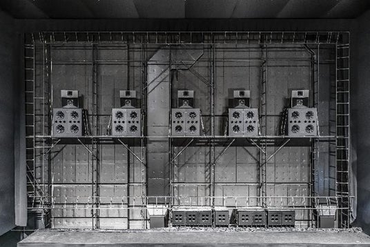 109シネマズプレミアム新宿のスクリーンの後ろに設置されたスピーカー。坂本龍一氏監修の下で設計したサウンドシステム「SAION(サイオン) -SR EDITION-」を全シアターに搭載。