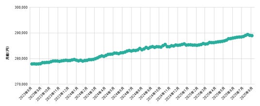 全国正社員平均月給は「288,951円」【2025年8月度 正社員平均月給・求人数レポート】