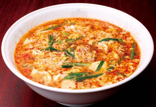 0辛~20辛まで選べる辛さ。唐辛子、ニンニク、ニラ、挽き肉が織り成す香り豊かなスープ。卵がまろやかに味をまとめます。