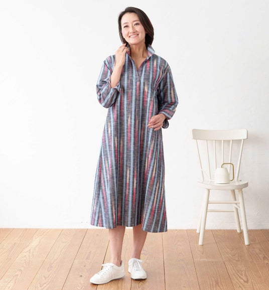 【初登場】後半[福岡]わの栞/久留米絣のシャツワンピース 94,600円 現品限り