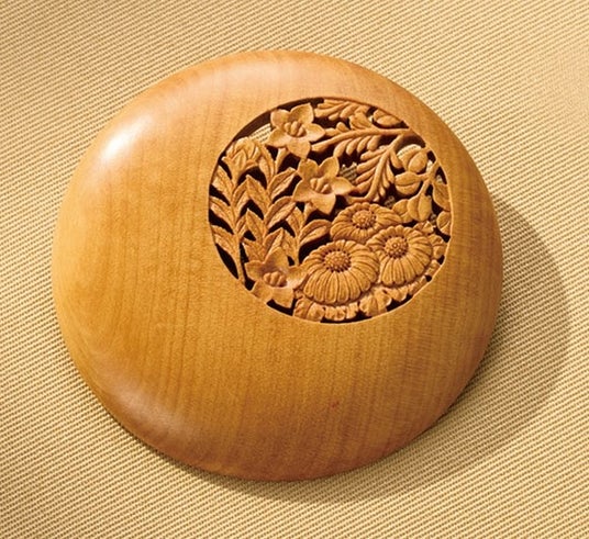 【初登場】前半[大分]開工房/ブローチ透かし彫り「月に秋草」(つげ、直径約6.5cm)176,000円 現品限り