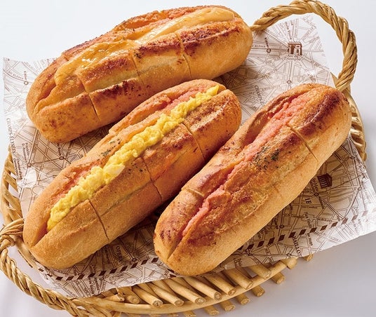 明太バターフランス 博多めんたいマヨ、たまごサラダ(各1本)486円 プレーン(1本)432円
