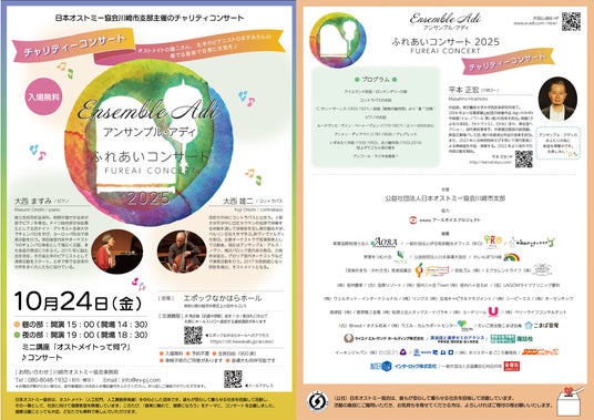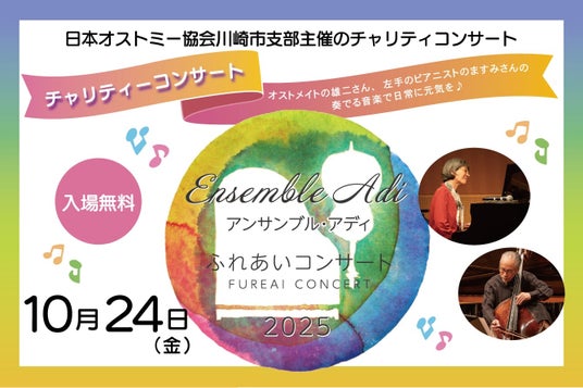 公益社団法人日本オストミー協会川崎市支部(事務局:神奈川県川崎市、支部長:坂本 純)は、合同会社アースボイスプロジェクト(本社:神奈川県鎌倉市、代表社員:榎田竜路)と協力し、健康づくりを目的とした「チャリティコンサート」を実施することをお知らせします。
