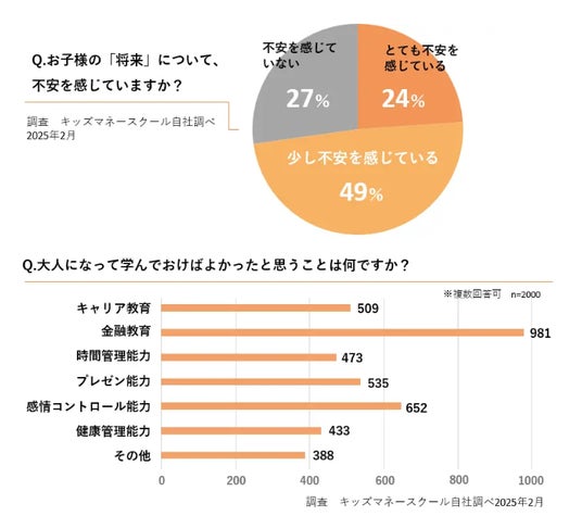 金融庁は、2026年度の税制改正において「NISA」の拡充を提案する予定で、長期的な資産形成を支援する「つみたて投資枠」において、現在18歳以上となっている対象年齢を引き下げることを求めています。また、日本全国で物価の上昇が続いており、帝国データバンクの調査によると、今年7月には2,105品目の値上げが見込まれ、前年比としては5倍。平均15%の値上げとなる見通しで、生活コストの負担が増加しています。こうした先行きの見えない「物価上昇による生活費の負担増」や「将来の収入への不安」から、子育て世帯の保護者からは「子どもにお金のことをしっかり学ばせたい」というニーズが高まっていることが伺えます。