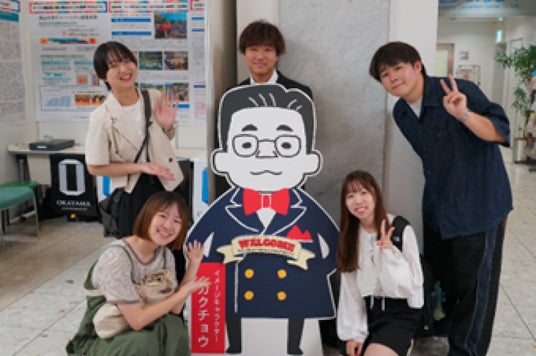 岡山大学ブースでは、本学の教職員や学生団体による活動をまとめたパネルを展示し、約100組以上が訪れました。訪問者は熱心に説明に耳を傾け、「ガクチョウパネル」との写真撮影も人気を集めました。