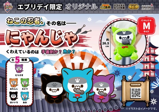 子どもから大人まで虜に!謎とかわいさを兼ね備えた猫のにんじゃ「にゃんじゃ」ぬいぐるみ&マスコットが登場!