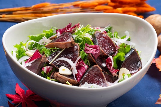 【オードブル】カツオ炭火焼きのカルパチョ/味噌漬けボイルポーク/キノコとサーモンのマリネ