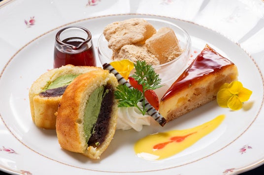 【デザート】ベイクドチーズケーキ/チョコロールケーキ/トリュフケーキ/安納芋ケーキ/どら焼き抹茶/りんごのシブースト/洋ナシのタルト/プリン/コーヒーゼリー/桃ゼリー/プチシュー/わらびもち