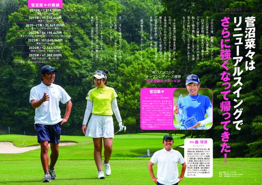 レッスンカットも豊富で、動作のイメージがつかみやすいのも本書の大きな魅力で、菅沼選手の自然体な語り口調、復活に導いた 森守洋 プロコーチの解説は初心者でも読みやすく、親しみやすいムックになっています。