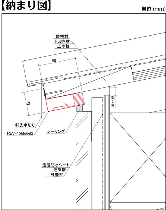 人気製品REV-15と同様に高い施工性・防水性を持ち、鼻隠しや破風の設置が不要になるため、より自由な住宅デザインを可能にします。
