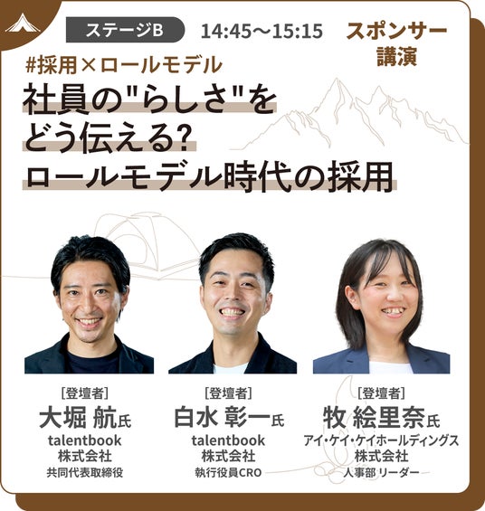 概要 : 求職者の関心が企業のハード情報から個人の価値観・人生観へとシフトする中、従来の「すごさ」アピール型採用は限界を迎えています。SNSの炎上リスクで個人の本音発信が困難になった今、企業はどのように社員の「らしさ」を安全かつ効果的に伝えるべきでしょうか。本セッションでは、talentbookによるロールモデル採用戦略の解説と、企業の実践事例とともに、求職者の納得感と共感を得る新しい採用広報の実現方法をお届けします。