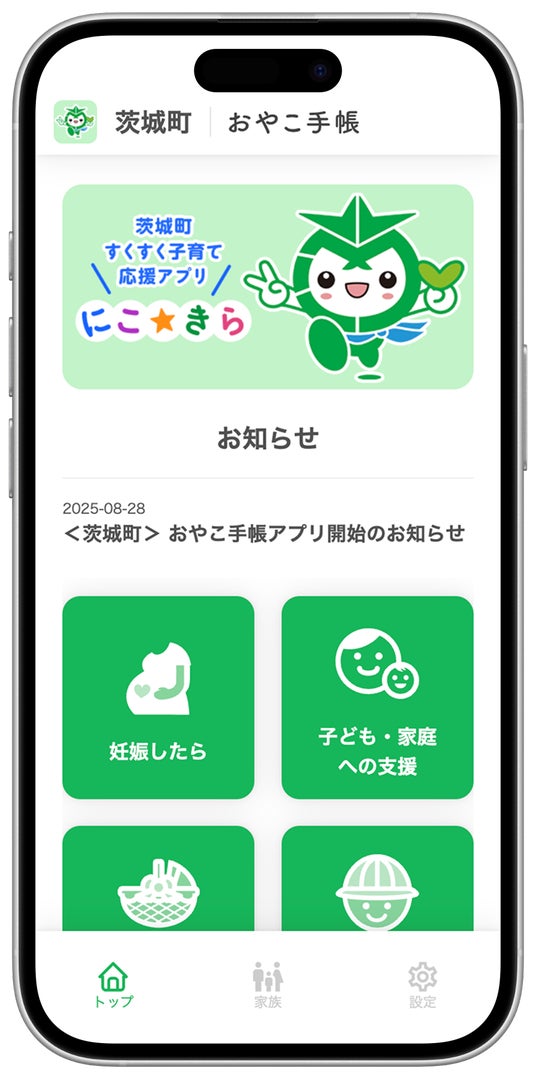 茨城町では、「子どもを安心して産み育てられる 夢と希望を未来へつなぐまち」を子ども・子育て支援事業計画の理念とし、さまざまな子育て支援を実施しています。この度、妊娠期から子育て期にわたる切れ目ない支援の一環として、「茨城町すくすく子育て応援アプリ にこ☆きら」の運用を開始しました。お子様の成長記録や予防接種のスケジュール管理、子育て支援情報の配信など、お子様の健やかな成長に役立つさまざまな機能がご利用いただけます。