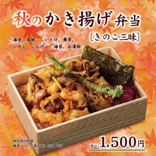 また、常設店では「秋のかきあげ弁当~きのこ三昧~」を2025年9月1日(月)より販売いたします。