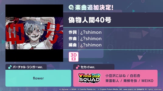 著作権表記:(C) SEGA / (C) Colorful Palette Inc. / (C) Crypton Future Media, INC. www.piapro.net All rights reserved.