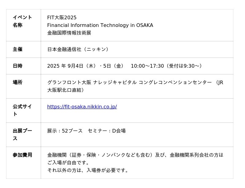 【9月4日~5日】金融機関に特化した国内最大級のITフェア「FIT大阪2025 金融国際情報技術展」に出展およびセミナー登壇します