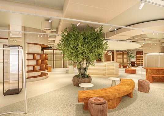 〈Demi-Luxe BEAMS(デミルクス ビームス)〉コーナーと店内に設けられたベンチ