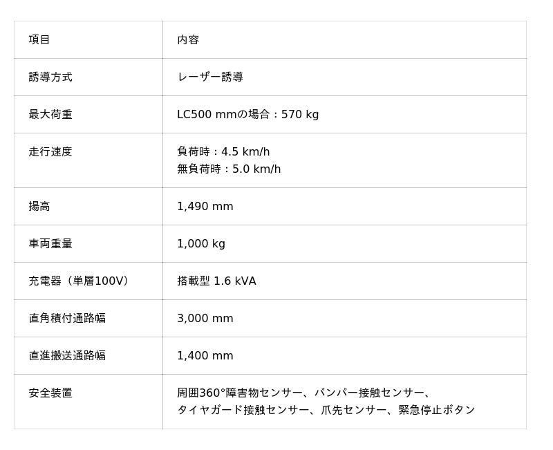 複数のパレットを一括認識し、効率的な搬送が可能です。トラックバースから仮置き場間の横搬送や工場での工程間の搬送などに力を発揮します。