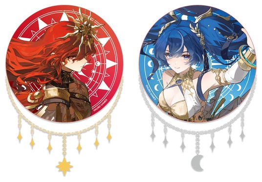描きおろしモチーフチェーン付き缶バッジ(オーガスタ/ユーノ) 全2種 各1,100円(税込) ※おひとりさま各2個まで
