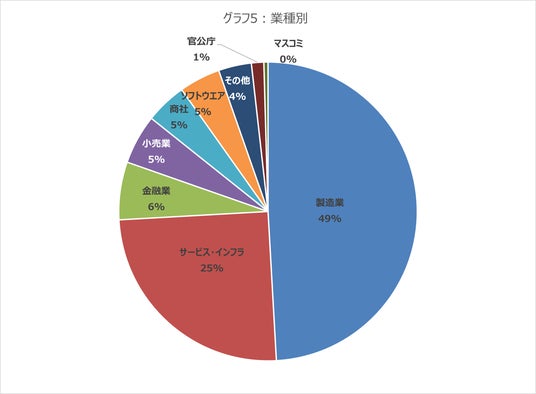 グラフ5は、応募部門に関係なく、すべての応募企画を対象に業種別で集計したものです。