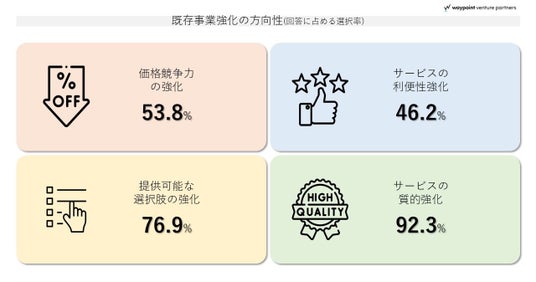 ◼️既存事業強化に取り組む方向性は「サービスの質的強化」が9割超