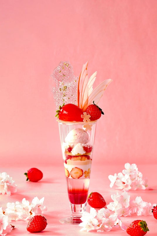 甘くジューシーな旬のいちごとほんのりと上品に香るさくらの魅力をギュッと詰め込み、鮮やかな色彩と繊細な盛り付けが目を惹く、美しいストロベリーパフェを期間限定で販売。
