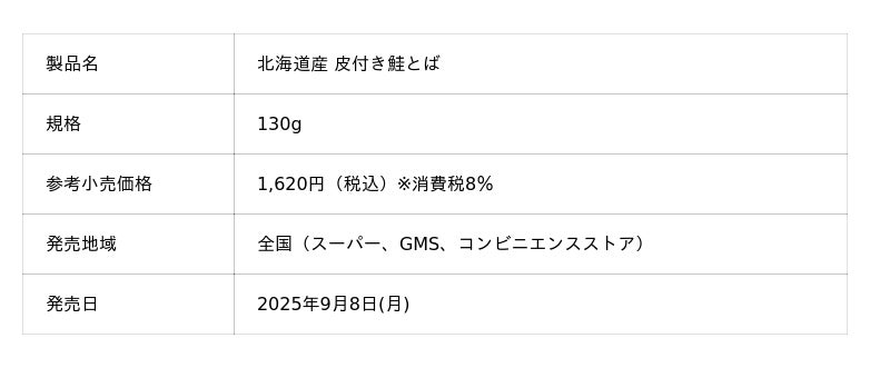 株式会社なとり(本社:東京都北区 会長兼社長:名取三郎)は、「北海道産 皮付き鮭とば」を9月8日(月)より新たに発売いたします。