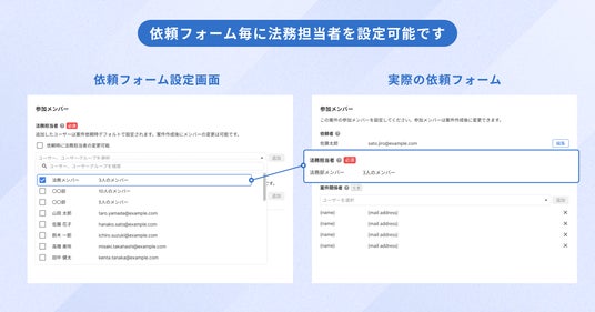 また、依頼フォームごとに法務担当者をデフォルトで指定できるため、依頼者が法務担当者の中でも誰に相談を依頼すれば良いのか分からないという状況であっても、迷わずに依頼することができます。