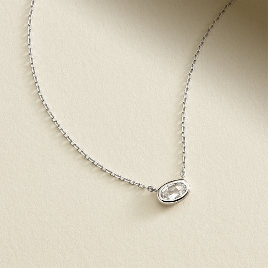 アフリカの夕暮れを思わせるニュアンスカラーが魅力のマラヤガーネットと、淡く移ろう紅葉のはじまりを映したようなホワイトトパーズ。それぞれが持つ異なる情景を胸元に映し出す、奥行きのあるネックレスです。丸みを帯びたカットが放つ優しい輝きは、心の内にふと差し込む光のよう。石座の裏には小さな透かし模様を施し、見えない部分にも遊び心を。身に着けるたびに、穏やかな気持ちへと導いてくれるジュエリーです。