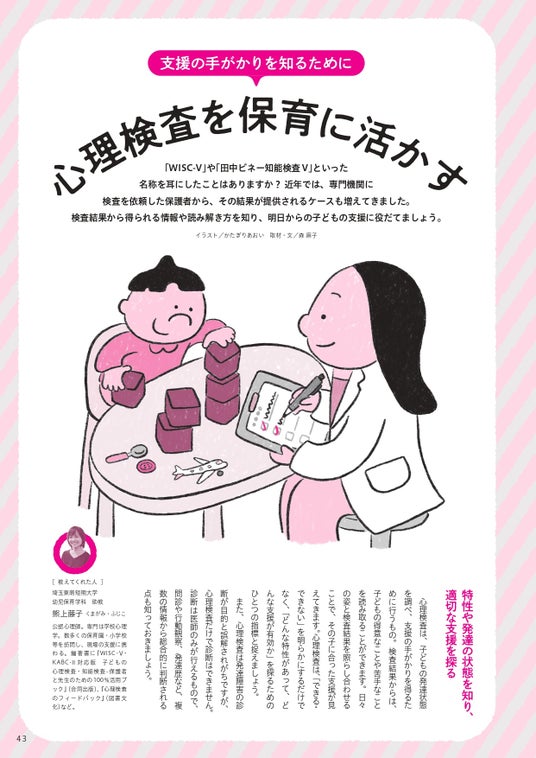 今号では、検査結果から得られる情報や読み解き方を徹底解説! また、保育のなかで子どもの支援にどう活かすか、そのポイントをご紹介します。