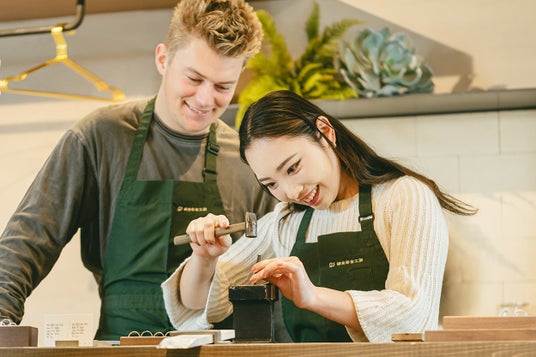 鎌倉彫金工房は、結婚指輪・婚約指輪が手作りできる工房です。伝統的な「鍛造(たんぞう)法」により、お客様自身の手で金属の棒から指輪を形作る過程を体験。「作る時間も、大切な宝物。」をコンセプトに、「手作りの楽しさをお伝えしたい」という想いで、集中して作業に没頭するひとときや、完成品を手にした際の感動をお届けしています。