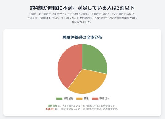 また、本白書のデータによれば、日本人の約4割が睡眠に不満を抱えており 、この「見えないコスト」は無視できません。
