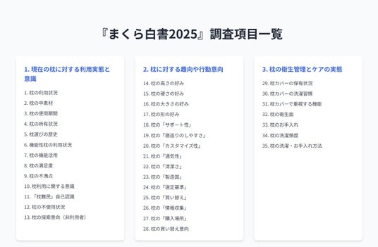 「枕難民」市場の巨大ニーズをデータで解明。「まくら白書2025」発刊。消費者の「不満」を、「ビジネスチャンス」に変える市場データを提供。