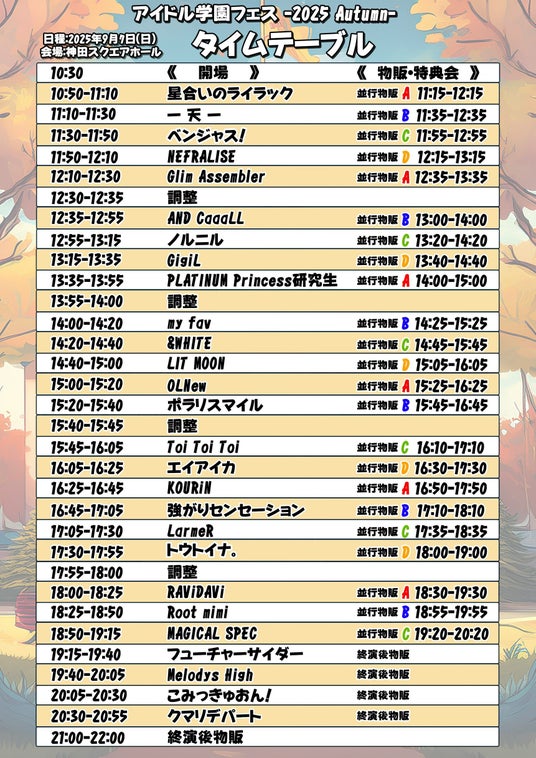 ※当日のタイムテーブルなどライブの最新情報は、 『アイドル学園』公式Xアカウント(https://x.com/idolgakuen2025)にて順次お知らせの予定。