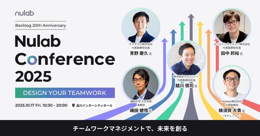 プロジェクト・タスク管理ツール「Backlog」を提供する株式会社ヌーラボ(本社:福岡県福岡市、以下 ヌーラボ)は、2025年10月17日(金) 品川インターシティーホールにて開催する組織とチームの未来を語るカンファレンスイベント「Nulab Conference 2025 ~ DESIGN YOUR TEAMWORK ~」について、追加登壇者およびセッション内容の詳細を新たに発表します。