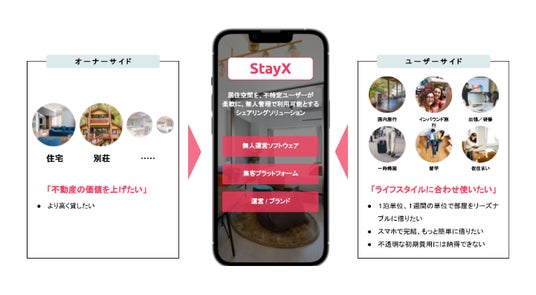 今回Bounceが提携した 「StayX」 は、matsuri technologiesが開発・提供する、空間の価値を最大限に引き出すソリューションです。ソフトウェアを中核に、従来は2年単位でしか貸し出せなかった物件を、1泊単位の宿泊施設や1ヶ月単位の短期賃貸として運用可能にするなど、空間の柔軟な活用を実現しています。
