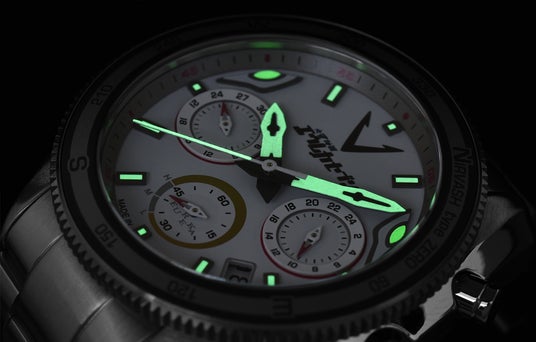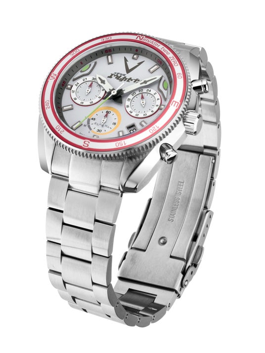 「ニルヴァーシュtype ZERO」をモチーフにした本モデルは、「ニルヴァーシュtype ZERO」のボディーカラーをイメージしたハーフマットホワイトカラーの文字盤を採用。