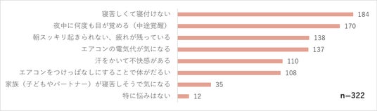 - 熱帯夜、睡眠に関して具体的にどのような悩みがあるか