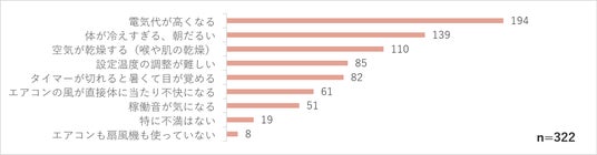 「電気代」や「冷えすぎ・だるさ」等への回答が多い結果