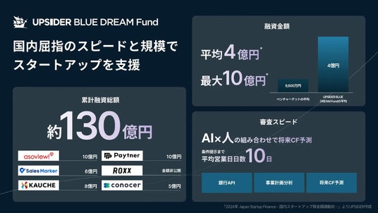UPSIDER BLUE DREAM Fundは引き続き、速く、大きな融資でスタートアップの資金調達に新たな選択肢を提供してまいります。