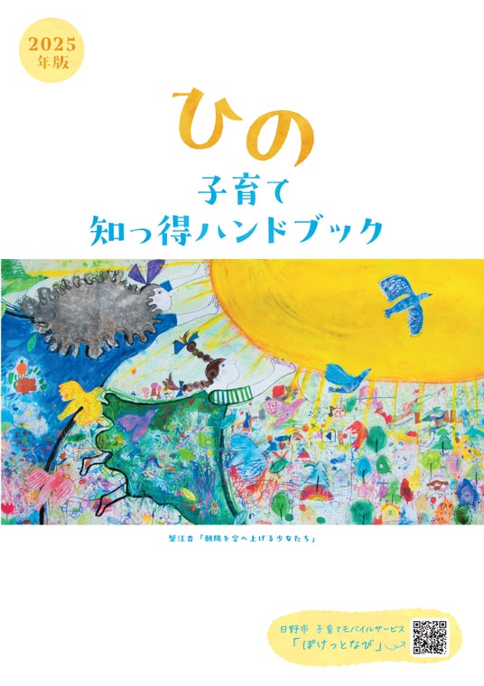 今までは妊婦向けの「妊娠・出産ガイドブック」とより広い年齢を対象とした「ひのっ子の子育て・子育ち 知っ得ハンドブック」の2冊を発行していましたが、これを集約し、市内の子育て世代にとって、より見やすく、かつ、便利なものとなるよう作成いたしました。表紙を彩るのは、令和5年11月5日「手をつなごう・こどもまつり」で、日野市出身のアーティスト蟹江杏さんと日野の子どもたちが描いた「みらいくのはじまり/日の出」をテーマにした絵です。