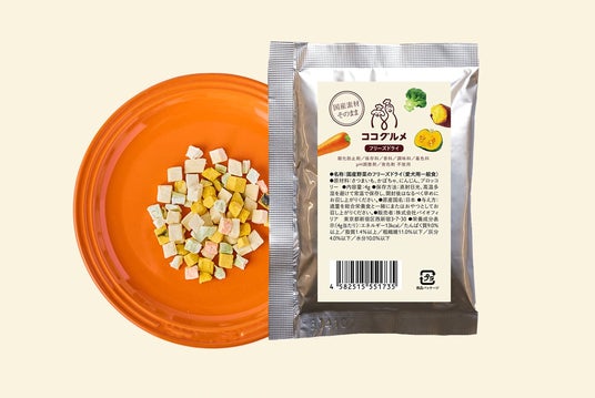 ココグルメ・ドライをよりおいしく食べてもらえるトッピング用のフリーズドライ野菜も同時発売。ココグルメに使用している原材料と全く同じ国産食材を、栄養素を極力壊さないようにフリーズドライにしました。トッピングはもちろん、おやつとしても使っていただけます。