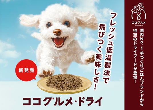 フレッシュペットフードNo.1のココグルメから待望のドライフード誕生!愛犬の健康を追求した手作りごはん品質のフレッシュ低温製法。