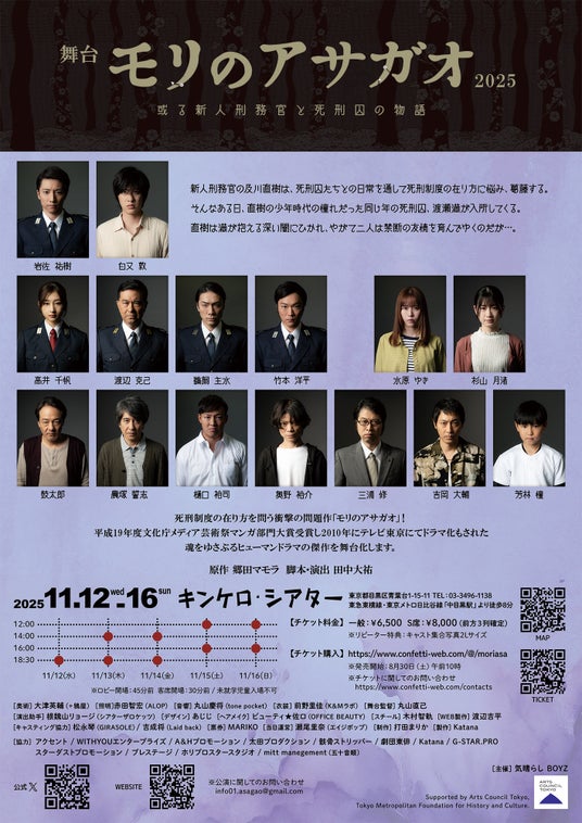 舞台『モリのアサガオ2025』―或る新人刑務官と死刑囚の物語― が2025年11月12日(水)~16日(日)に中目黒キンケロ・シアター(東京都目黒区青葉台1丁目15−11)にて上演されます。
